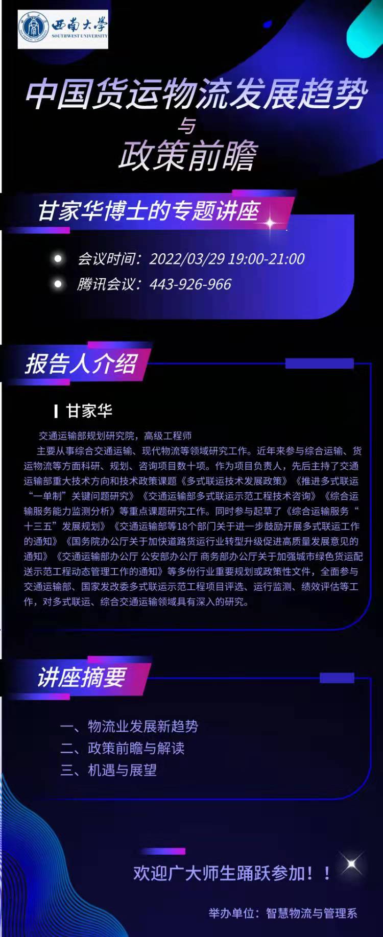 讲座:我国货运物流发展趋势与政策前瞻