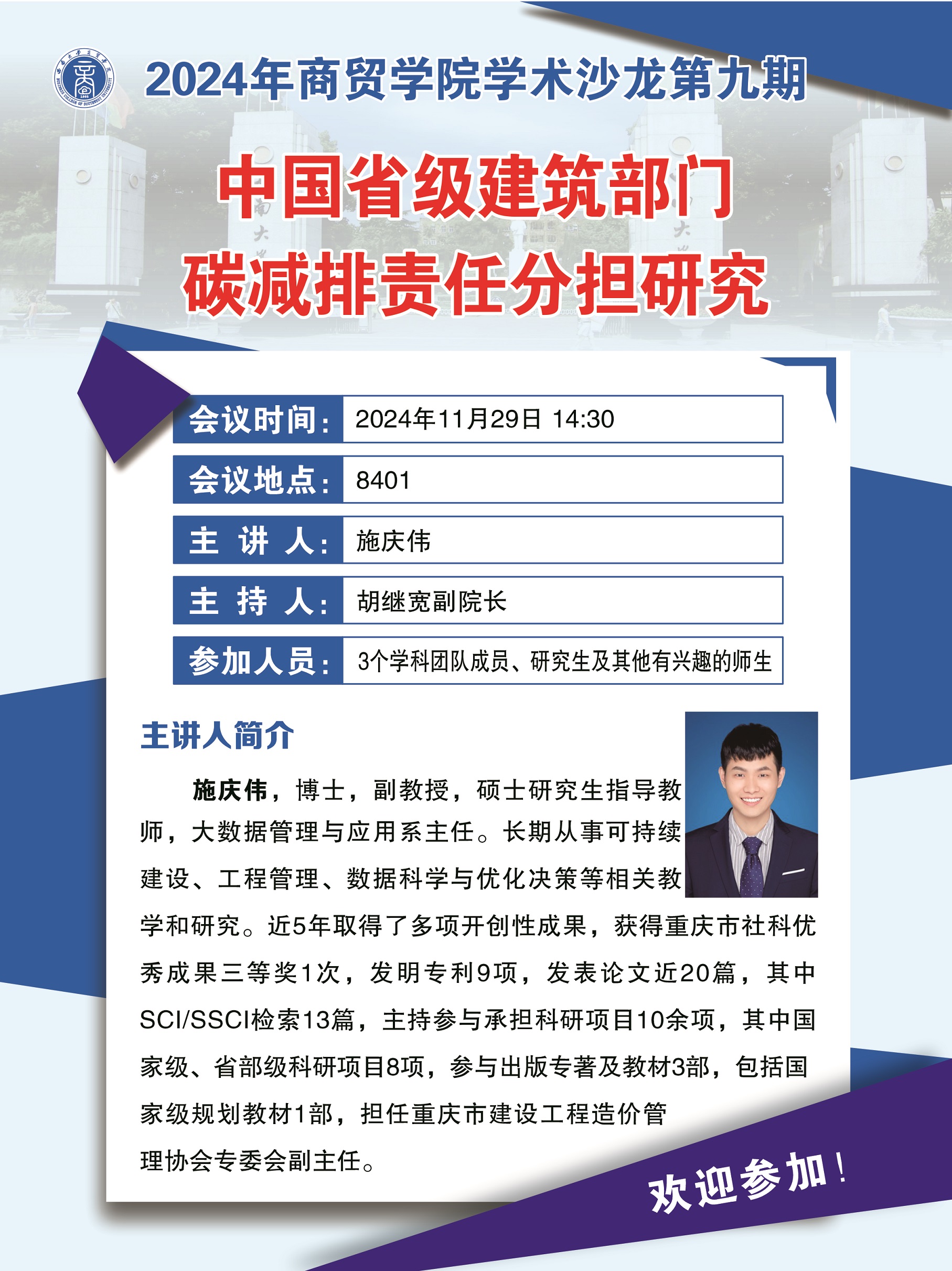 学术沙龙:中国省级建筑部门碳减排责任分担研究