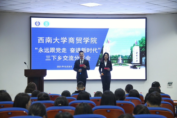 为深入贯彻落实习近平总书记关于青年工作的重要思想,同时对2021暑期“三下乡”活动做出总结,10月8日在9601报告厅,我院举行了以“永远跟党走,奋进新时代”为主题的三下乡交流分享会。学院团委书记、学生工作办公室主任廖鹏老师,学院团委学生会主席团成员海书豪、李博雅、李婷婷、杨青宇,各小队成员及指导老师参与本次分享会。