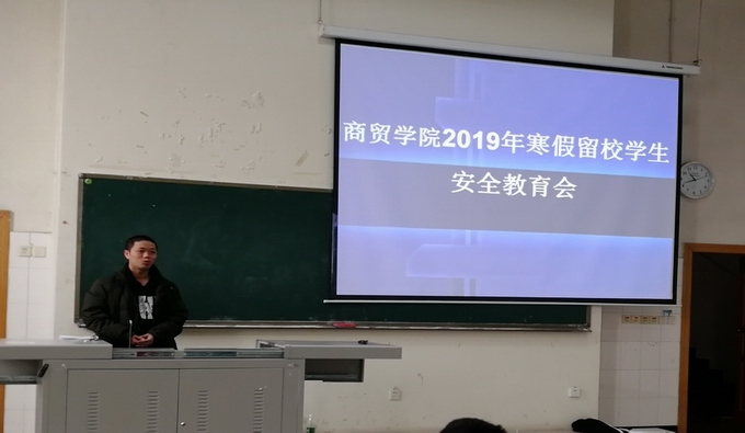 1月11日上午,澳门pg官方电子平台2019年寒假留校学生安全教育大会在2711举行。院团委书记廖鹏、辅导员谭觅及寒假留校学生参加了本次安全教育大会。