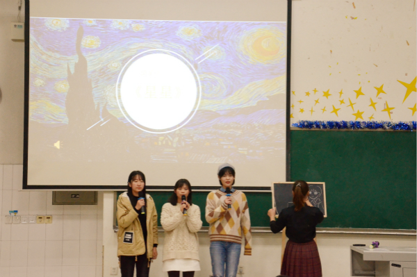 比赛开始后,参赛寝室陆续上台展示寝室设计和文化。其中,6615寝室以“超模休息室”为主题,结合她们有趣轻快的视频与讲解,展示了她们温馨的寝室氛围,充分体现了她们室友之间的友爱与互助;6219寝室以小猪佩奇为主题,展示了她们寝室的活泼可爱;6214寝室则以星空、心房为主题,让现场观众看到了一个梦幻的寝室。除了展示寝室设计,各参赛寝室还现场表演了动物情景剧、配乐诗朗诵、创意歌舞秀等形式多样的节目。