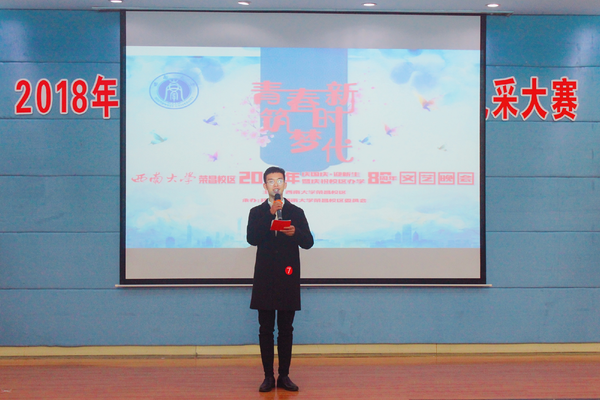 本次主持人大赛共有10名选手进入决赛,比赛分为“印象先行”和“随机应变”两个部分。选手们热情洋溢,精神饱满,一一展示了自己的风采。其中,7号选手陶宇阳以迎新晚会为主题模拟了开场主持。他口齿清晰、感情投入、自信阳光、收放自如,充分展示了当代大学生积极向上的精神面貌,调动了全场的情绪,赢得了全场同学的掌声。