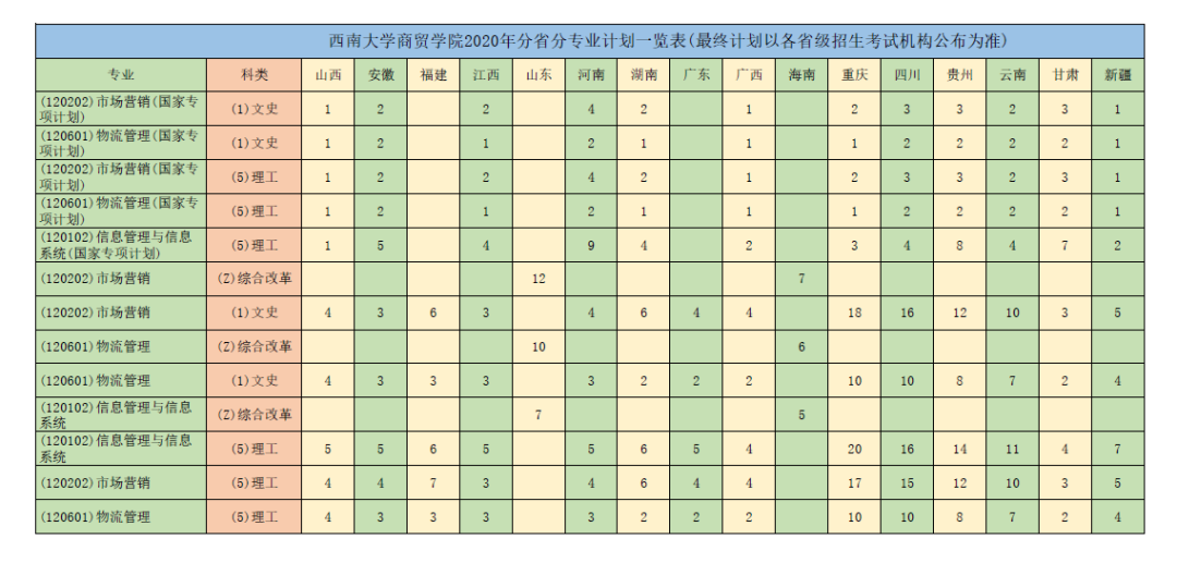2020年澳门pg官方电子平台面向全国16个省、直辖市、自治区,在一本各批次(批次合并的省份按照规定批次)招收全日制普通本科学生约630人,其中市场营销大类270人,物流管理大类180人,信息管理与信息系统专业180人(最终计划以各省级招生考试机构公布为准)。