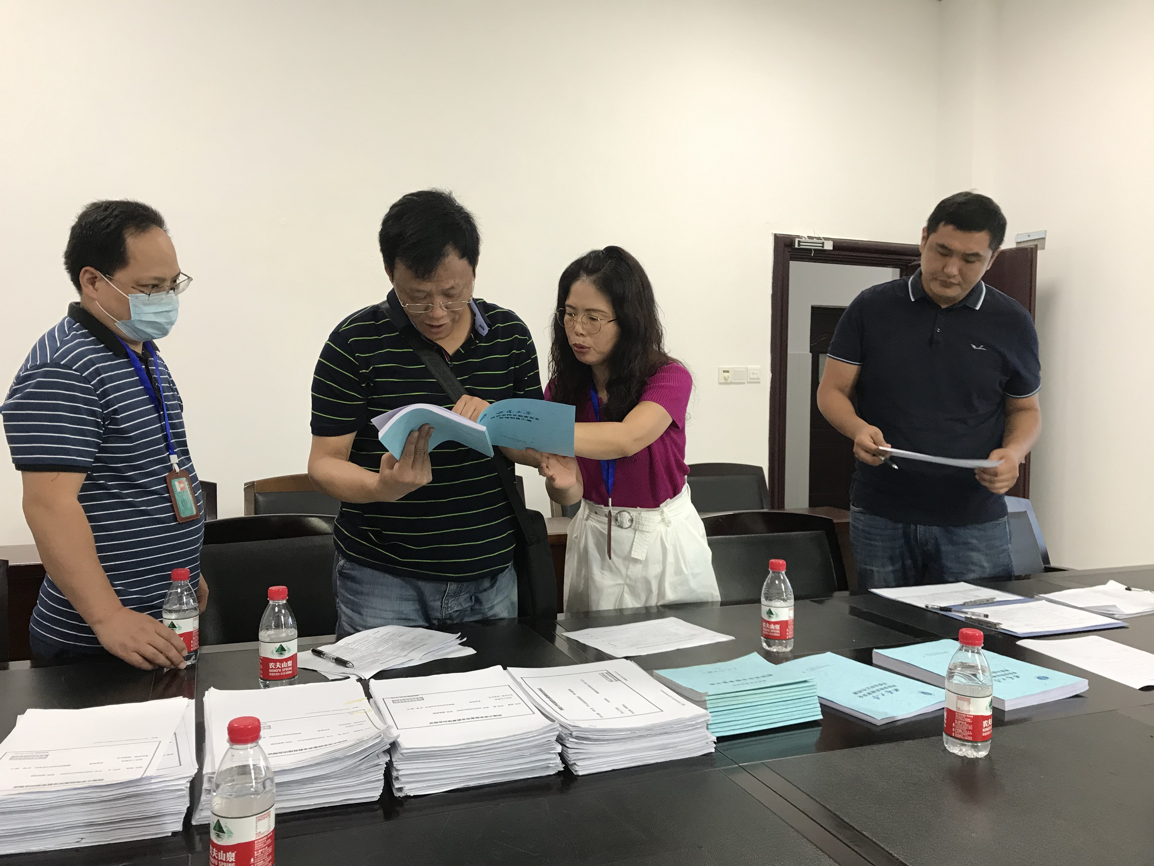 检查组现场检查实验室安全工作的档案资料、查看实验室安全现状